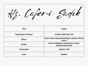 Imam Cafer i Sadik war der sechste Imam und lebte in der Zeit, in der die Umayyadenherrschaft fiel und die Abbasiden an die Macht kamen. Diese politische Veränderung öffnete einen kurzen Raum, in dem er lehren und Menschen bilden konnte. Er wurde zu einem bedeutenden religiösen Lehrer und viele Menschen aus unterschiedlichen Regionen suchten sein Wissen. Selbst bekannte Gelehrte aus anderen Glaubensrichtungen nahmen Unterricht bei ihm.