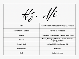 Imam Ali war der Cousin und Schwiegersohn des Propheten Muhammad. Schon als Kind lebte er im Haus des Propheten und wurde von ihm erzogen. Er war der erste, der an die Sendung des Propheten glaubte, ihm folgte und sein Leben für ihn einsetzte. Mit ihm beginnt die Linie der Zwölf Imame und die spirituelle Grundlage des Alevitentums.